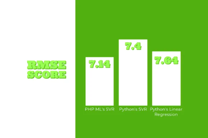 A model’s ability to predict quantitative data is gauged by its Root Mean Square Error (RMSE), where lower values denote a better match. Among the three models, PHP-ML’s Support Vector Regression’s RMSE score is the lowest, which is 7.14. The model’s coefficient of determination (R2), which must be computed independently, is not directly measured by RMSE values. Furthermore, it should be noted that a lower RMSE does not always indicate a better model because interpretation of these values depends heavily on context and domain knowledge.